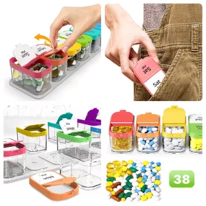فرز الأقراص أو الفيتامينات يتم بسرعة باستخدام الفواصل الواضحة. كل قسم يفتح بسلاسة، ليتمكن الجميع من إدارة الأدوية بسهولة.