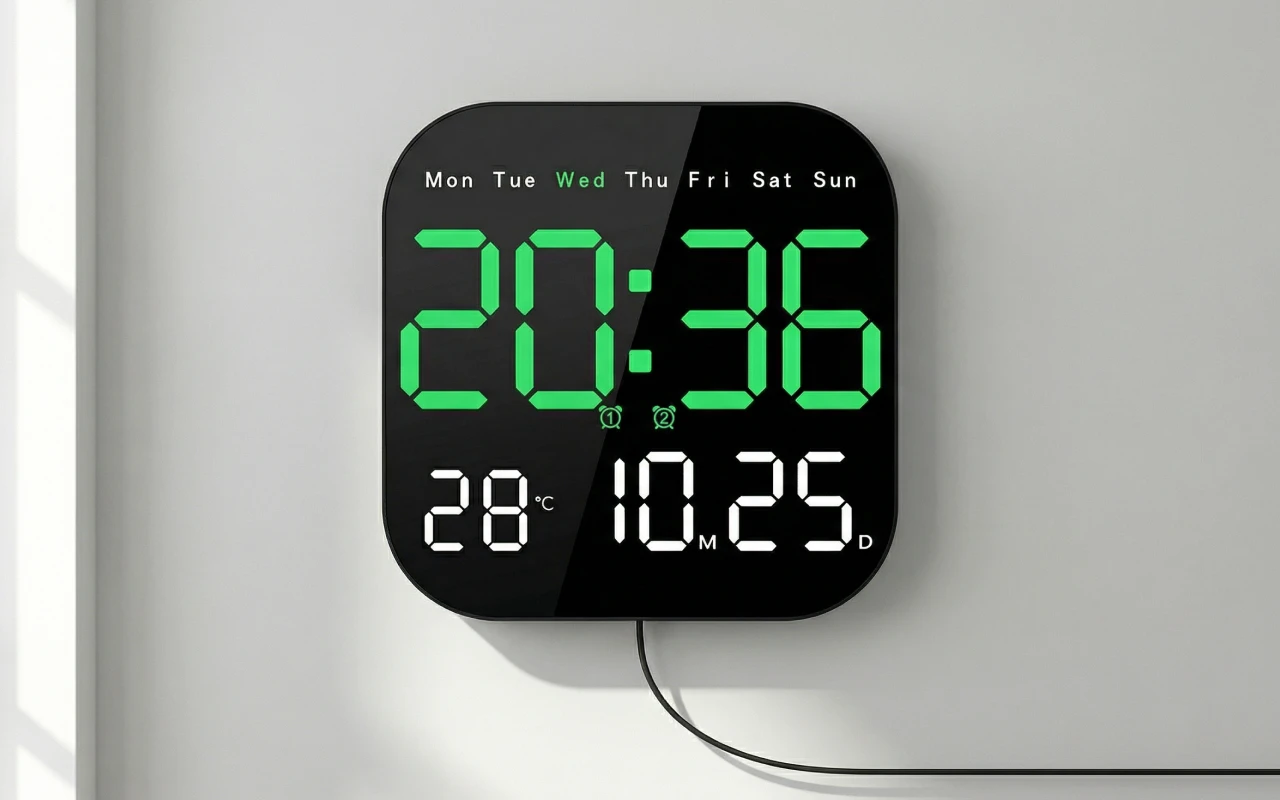 أضع هذه الساعة في مكتب المنزل، والأرقام الكبيرة مع درجة حرارة الغرفة تساعدني على الالتزام بالجدول والشعور بالراحة خلال أيام العمل الطويلة.