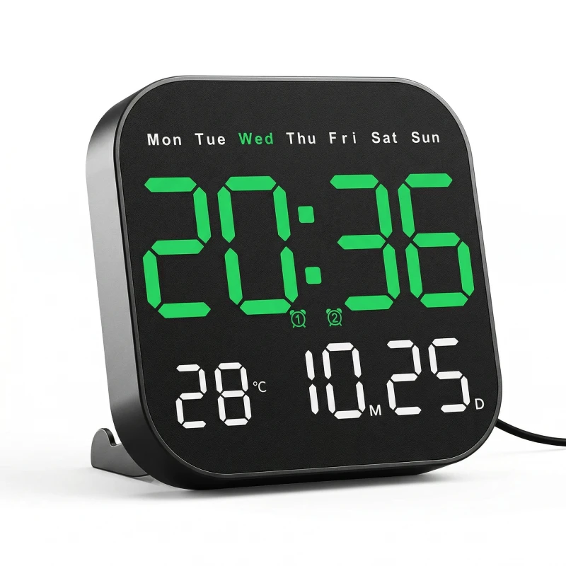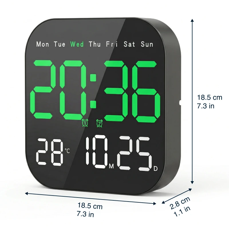 أضع هذه الساعة في مكتب المنزل، والأرقام الكبيرة مع درجة حرارة الغرفة تساعدني على الالتزام بالجدول والشعور بالراحة خلال أيام العمل الطويلة.