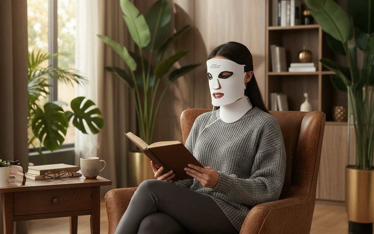 قناع الضوء هذا غير حياتي. أستطيع فعلاً القيام بعدة مهام أثناء استخدامه وأصدقائي لاحظوا توهج وجهي!
