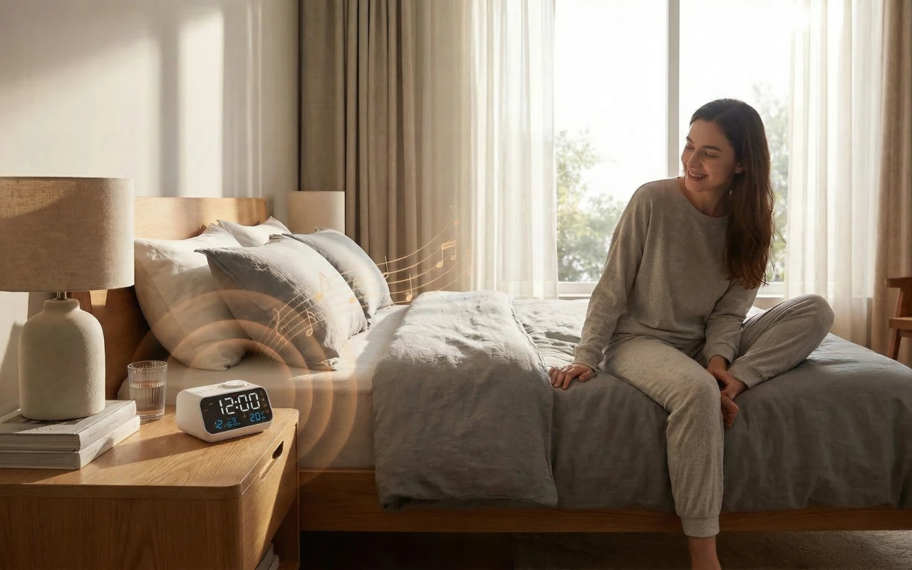 اضبط منبهين منفصلين للمساعدة في الحفاظ على روتين بسيط وموثوق. اختر موسيقى هادئة أو راديو حيوي لتستيقظ بشعور هادئ ومستعد.