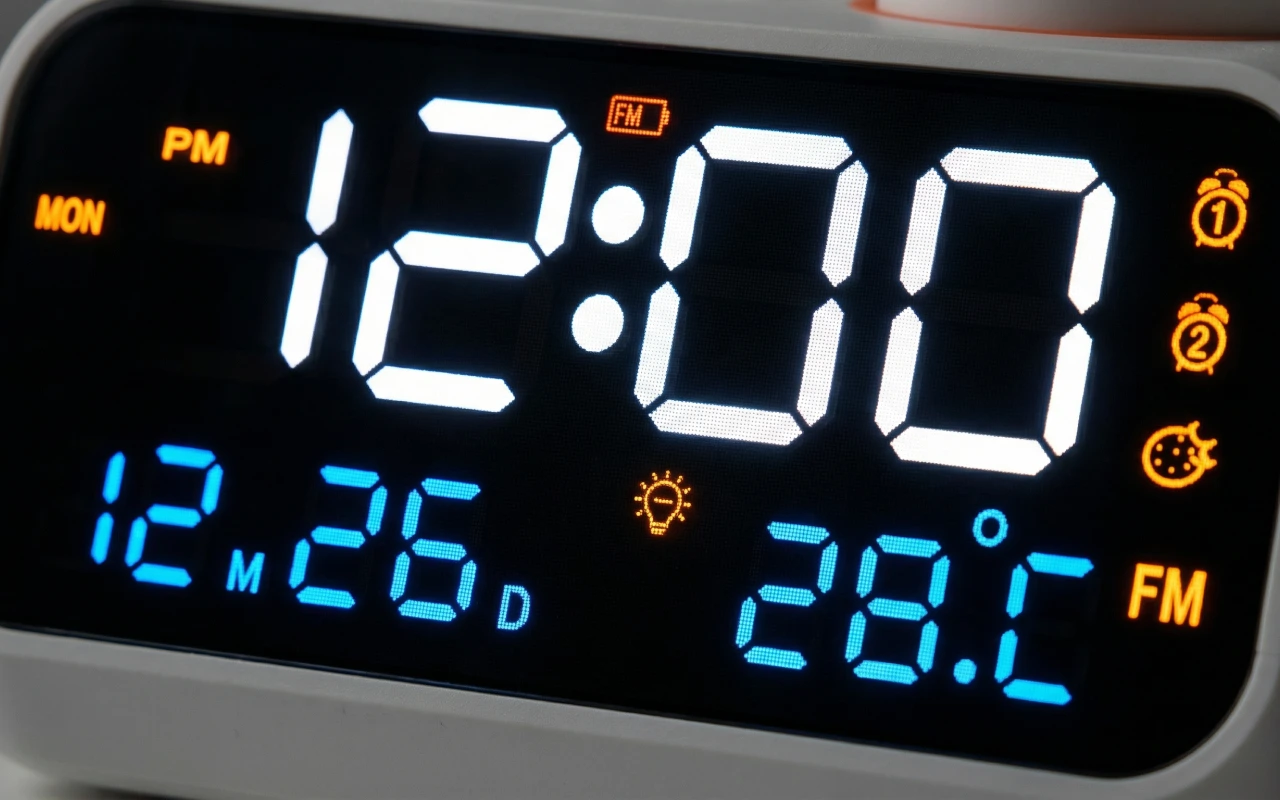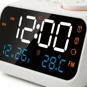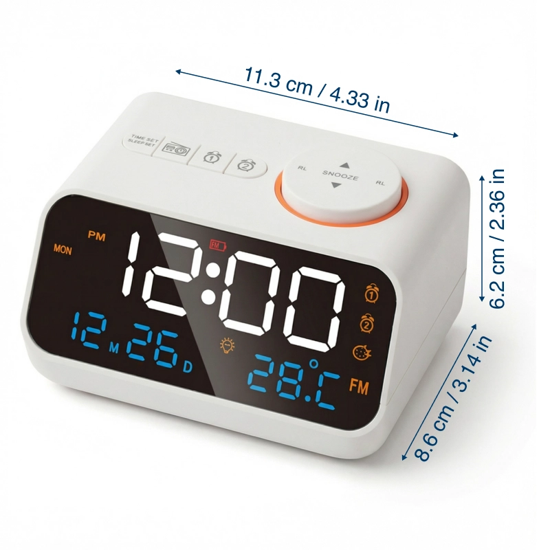 الأرقام الكبيرة بتقنية LED سهلة القراءة نهارًا وليلاً. اضبط السطوع حتى لا يزعج نومك أو صباحك.