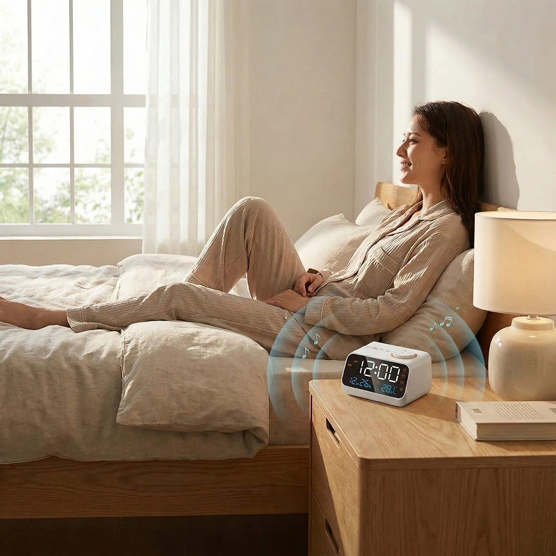 صوت الراديو واضح والمنبهات سهلة الضبط. أستمتع بالاستماع إلى الأخبار بينما أتحقق من درجة الحرارة الداخلية قبل العمل.