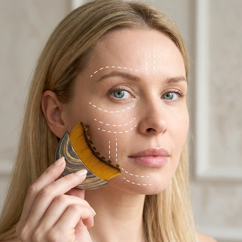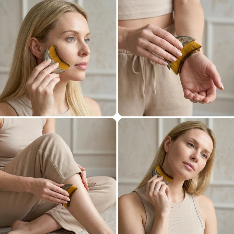 هذا الأداة تجعل وجهي يبدو مشدوداً خلال دقائق. الشعيرات لطيفة، وبعد أسبوع لاحظت أن بشرتي أصبحت أكثر إشراقاً. هي بسيطة ومريحة جداً للإمساك.