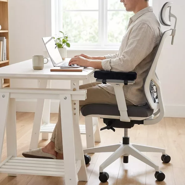 اشتريت هذه للكرسي في مكتبي المنزلي. الوسادة تدعم الساعدين جيدًا لدرجة أن كتفيّ تبقيان مسترخيتين، ولم أعد أنحني فوق المكتب بعد الآن.