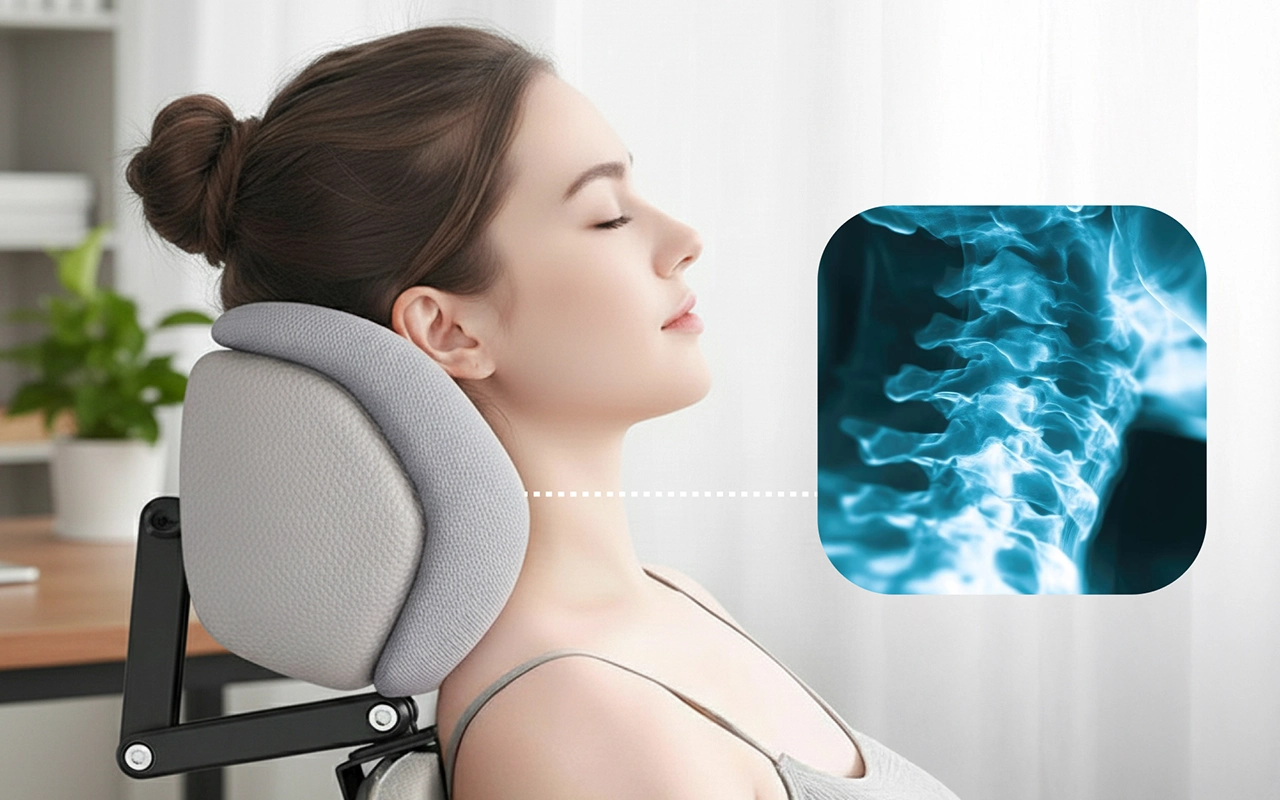 قلل التوتر في كتفيك من خلال دعم رأسك بلطف. هذا الدعم يخفف الضغط ويمنع الانزعاج الناتج عن الجلوس بشكل غير صحيح.