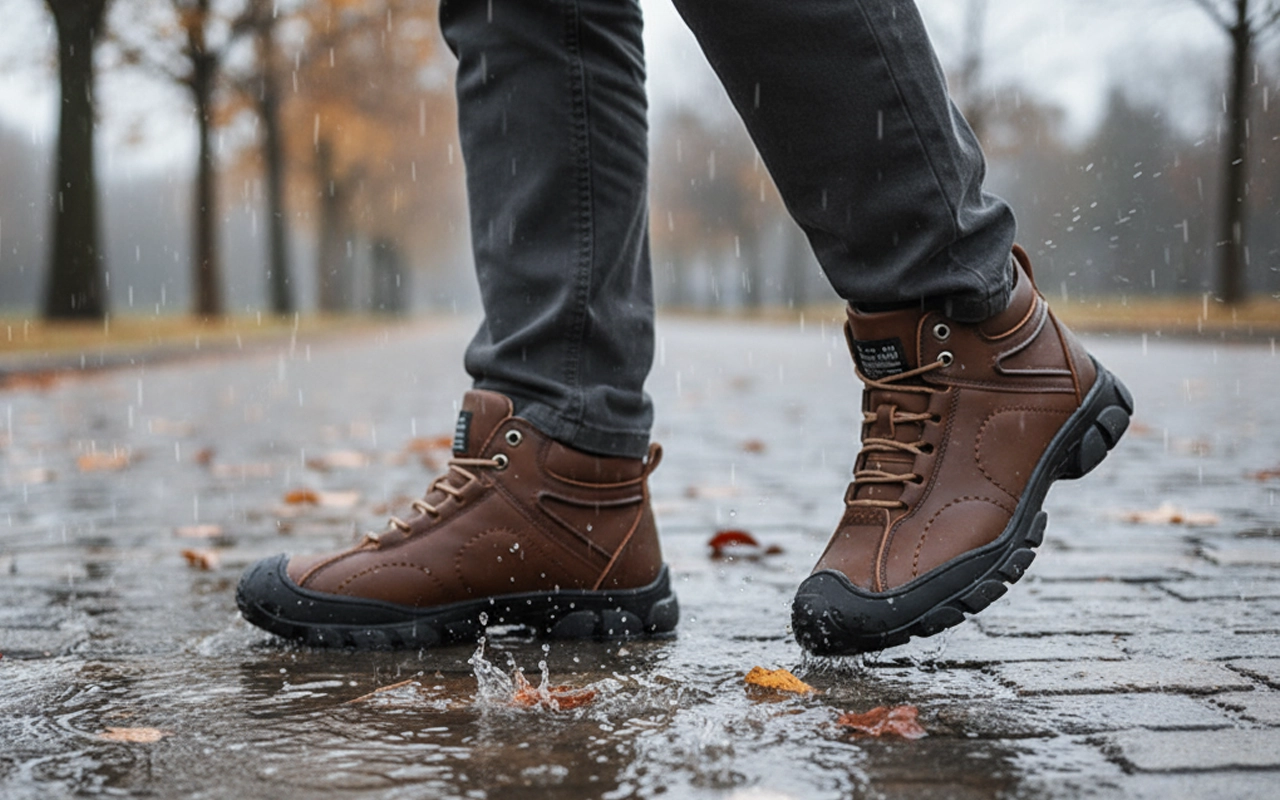 المطر والثلج لا يمكنهما التسرب عبر الجزء الخارجي المتين. تبقى أصابع قدميك جافة، مما يجنبك الشعور بالبرد أو البلل.