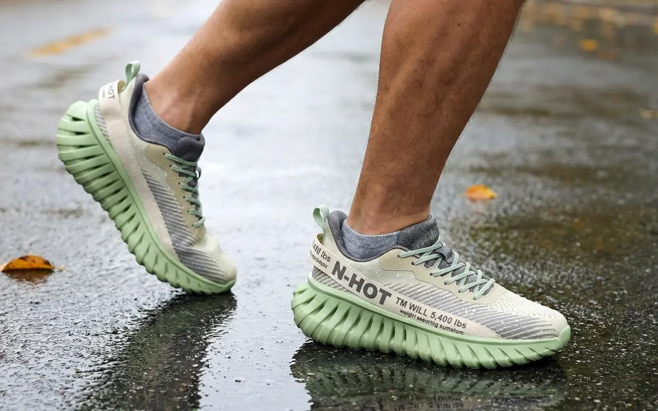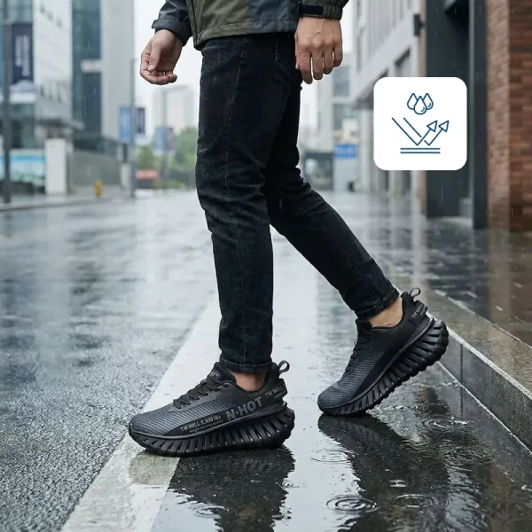 النعل المانع للانزلاق يمنع السقوط على المسارات الرطبة أو الموحلة. تحرك بثقة وأنت تعلم أنك محمي من الانزلاق.