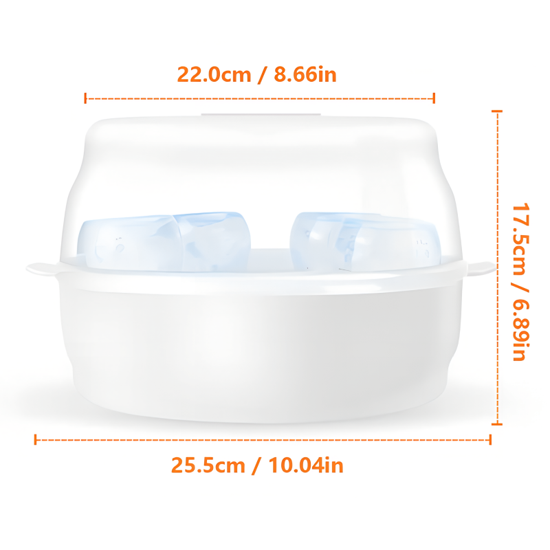 معقم زجاجات أورتركس بالبخار مصنوع من بلاستيك خالٍ من BPA. لا تتلامس أية مواد كيميائية ضارة مع زجاجات طفلك أو لهاياته.