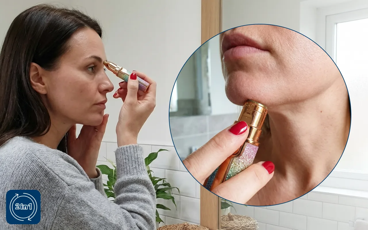 قومِي بتشكيل الحواجب وإزالة شعر الوجه باستخدام أداة واحدة عملية. غيري الرؤوس بسرعة لترتيب الحواجب أو المناطق الحساسة الأخرى.