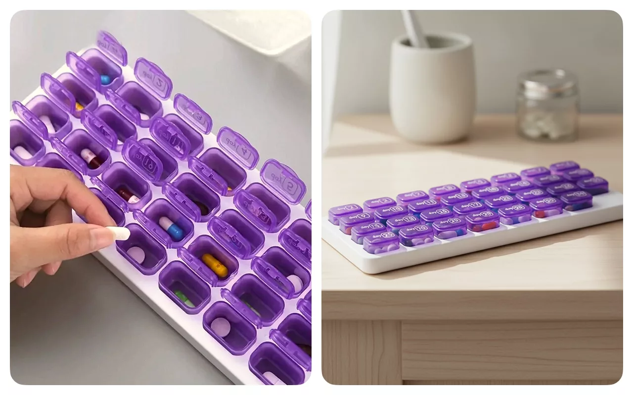 لا داعي للقلق بشأن نسيان الجرعات أو الوقوع في خلط. كل مقصورة محددة بالتاريخ الصحيح في كل مرة.