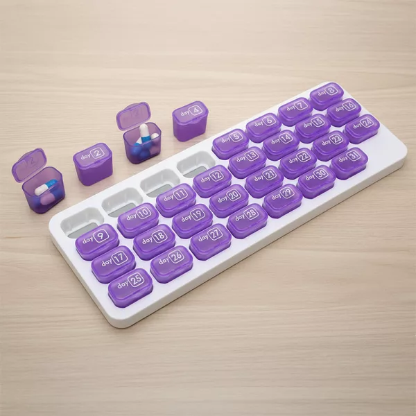 سيطر على جرعاتك اليومية باستخدام كبسولات مرقمة ببساطة. يجعل أوروتريكس تخزين الفيتامينات والأدوية سهلاً للجميع. خطط لشهر كامل دون ارتباك أو توتر. تحافظ كل كبسولة على وضوح كل شيء وأمانه طوال الشهر.