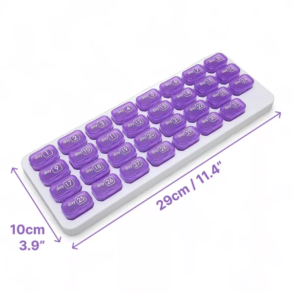 لا داعي للقلق بشأن نسيان الجرعات أو الوقوع في خلط. كل مقصورة محددة بالتاريخ الصحيح في كل مرة.