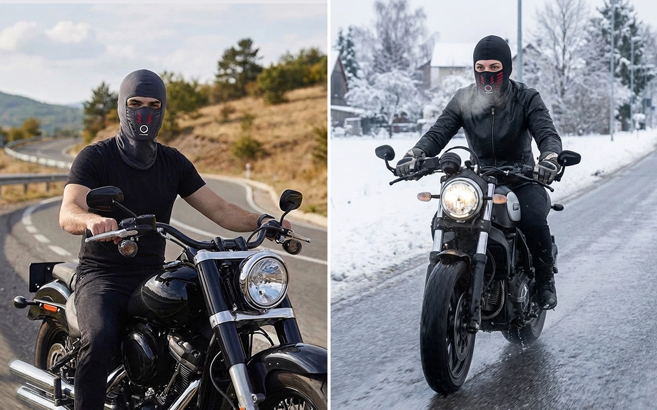 ركوب سكوتر في الخريف أصبح أفضل بكثير الآن، أنفي وخدودي يبقيان دافئين. قناع الوجه ناعم وجميل، وما زلت أستطيع التنفس بسهولة.
