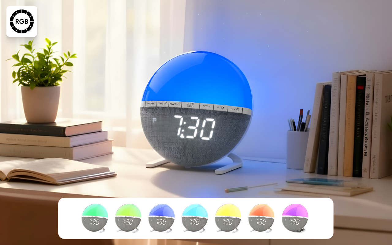 يستخدم منبه أورتركس ألوانًا هادئة تزداد سطوعًا تدريجيًا. يساعد ذلك جسمك على الشعور بالهدوء والطاقة كل صباح.