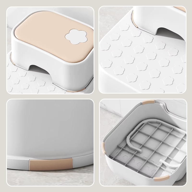 يساعد كرسي أورتيكس الأطفال على الوصول إلى المغاسل دون عناء. كل طفل يكتسب الثقة في أداء روتينه اليومي بأمان واستقلالية. التصميم المتين يتناسب تمامًا مع أي حمام أو غرفة معيشة. التنظيف سريع بفضل السطح الأملس والبنية الذكية.