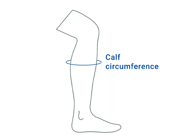- ١. لف شريط القياس حول أوسع جزء من ساقك.