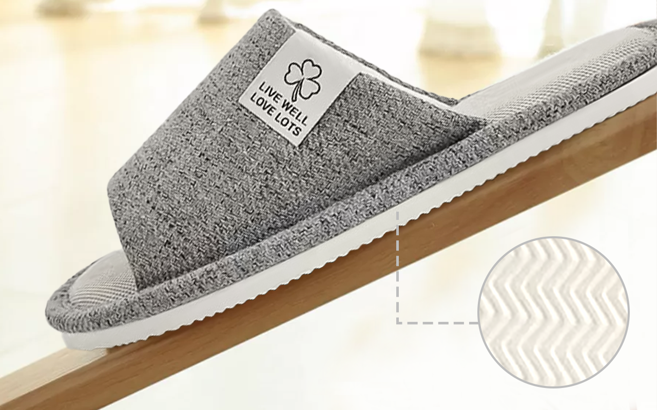 النعل غير القابل للانزلاق يساعد على منع الانزلاق على البلاط أو الخشب. امشِ بثقة من المطبخ إلى غرفة النوم دون قلق.