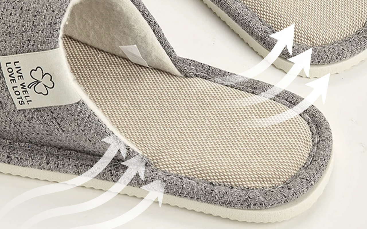 نسيج قطني وكتاني يسمح بتدفق الهواء ويمنع تعرق القدمين. استمتع بنعومة القماش التي توفر راحة للبشرة طوال اليوم.