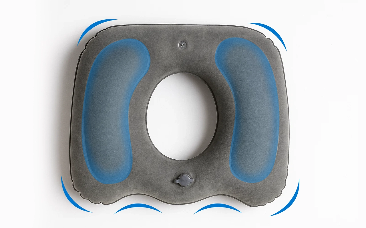 هذه الوسادة تحافظ على شكلها جيدًا وتمنحني دعمًا ممتازًا على الكراسي الصلبة. سهلة النفخ والتفريغ في أي وقت.