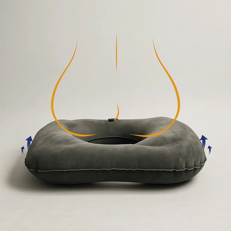 هذه الوسادة تحافظ على شكلها جيدًا وتمنحني دعمًا ممتازًا على الكراسي الصلبة. سهلة النفخ والتفريغ في أي وقت.