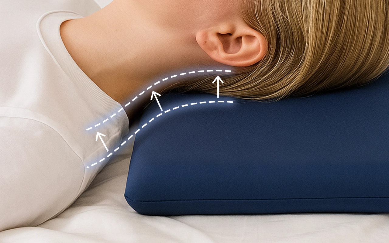 يتلاشى التوتر بينما يسترخي رأسك بلطف على الوسادة. هذا يضمن الراحة لعنقك وأعلى ظهرك.
