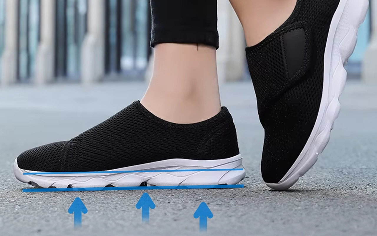 لا داعي لرباط الحذاء، فقط أدخل قدميك وانطلق بسرعة. مثالي لمن يحتاجون لتغيير سريع أو دعم إضافي.
