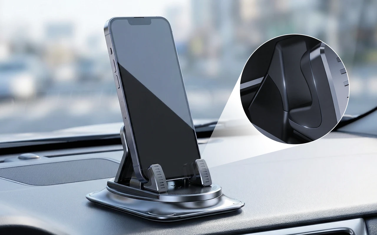 وسادات مطاطية تمنع الانزلاق أو السقوط عند المطبات. يبقى جهازك آمنًا حتى أثناء الانعطافات الحادة.