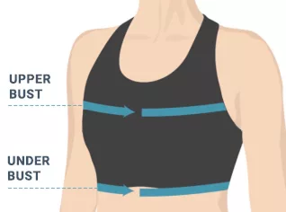 - 3. لقياس أسفل الصدر، لفي شريط القياس حول القفص الصدري مباشرة وتحت الصدر.