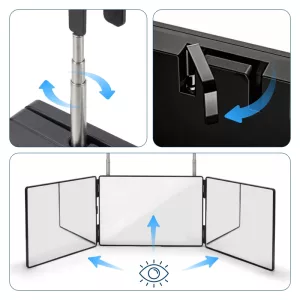 مرآة أورتوريكس الثلاثية القابلة للطي تحل بسرعة وسهولة مشاكل العناية اليومية. عدل الارتفاع لرؤية كاملة أثناء التصفيف أو الحلاقة. اطوها بشكل مسطح لتناسب الحقائب والأدراج للسفر. استمتع بانعكاسات واضحة لقصات الشعر أو المكياج أو العناية بالبشرة كل يوم.
