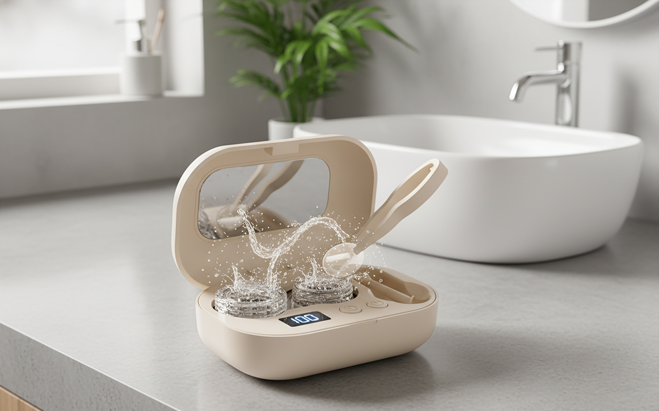 الأمواج فوق الصوتية عالية التردد تزيل البروتين والغبار بسرعة. لا حاجة للفرك، وبالتالي تبقى العدسات آمنة وواضحة.