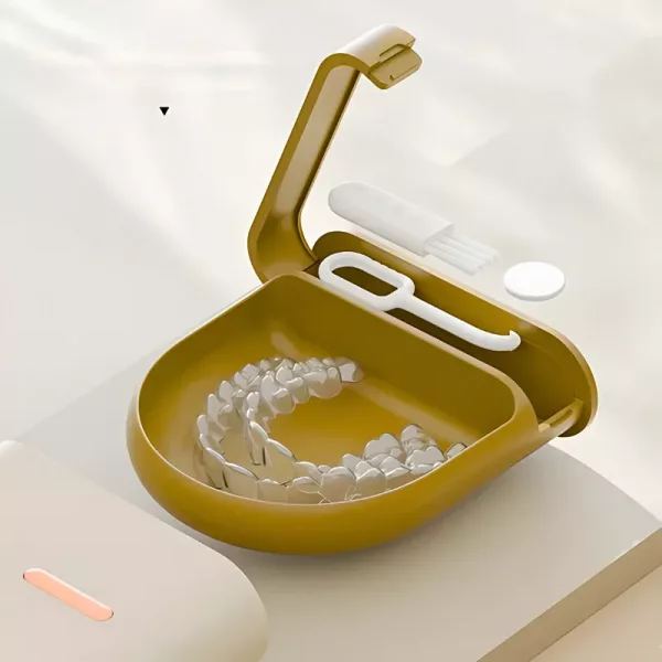 علبة أطقم الأسنان من أورتركس مقاومة للتشقق وتدوم أمام الاستخدام اليومي. السطح غير السام يحافظ على سلامة ونظافة الأدوات الفموية.