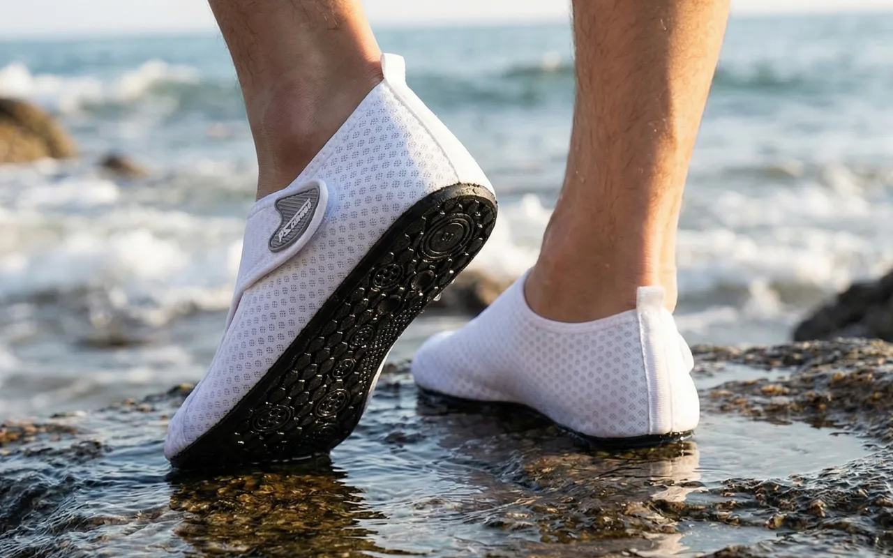 استمتع بالمشي على الشاطئ دون جوارب مبللة أو انزلاق. أحذية أورتوريكس تحمي أصابع قدميك من الصخور والأصداف الحادة بسهولة. تنظيف القدمين بسيط لأن الرمال تُزال في ثوانٍ. اقضِ ساعات أطول بجانب الماء دون أحذية رياضية مبللة.