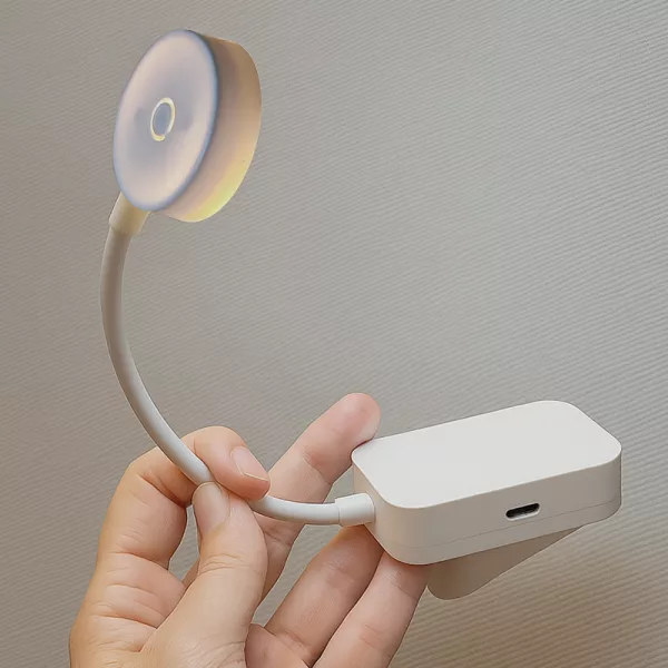 هذا المصباح الصغير يثبت على كتابي ولا يتحرك. أحب الضوء الناعم وكيف أنه مريح لعيني في الليل.