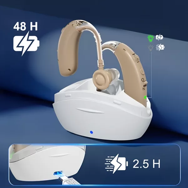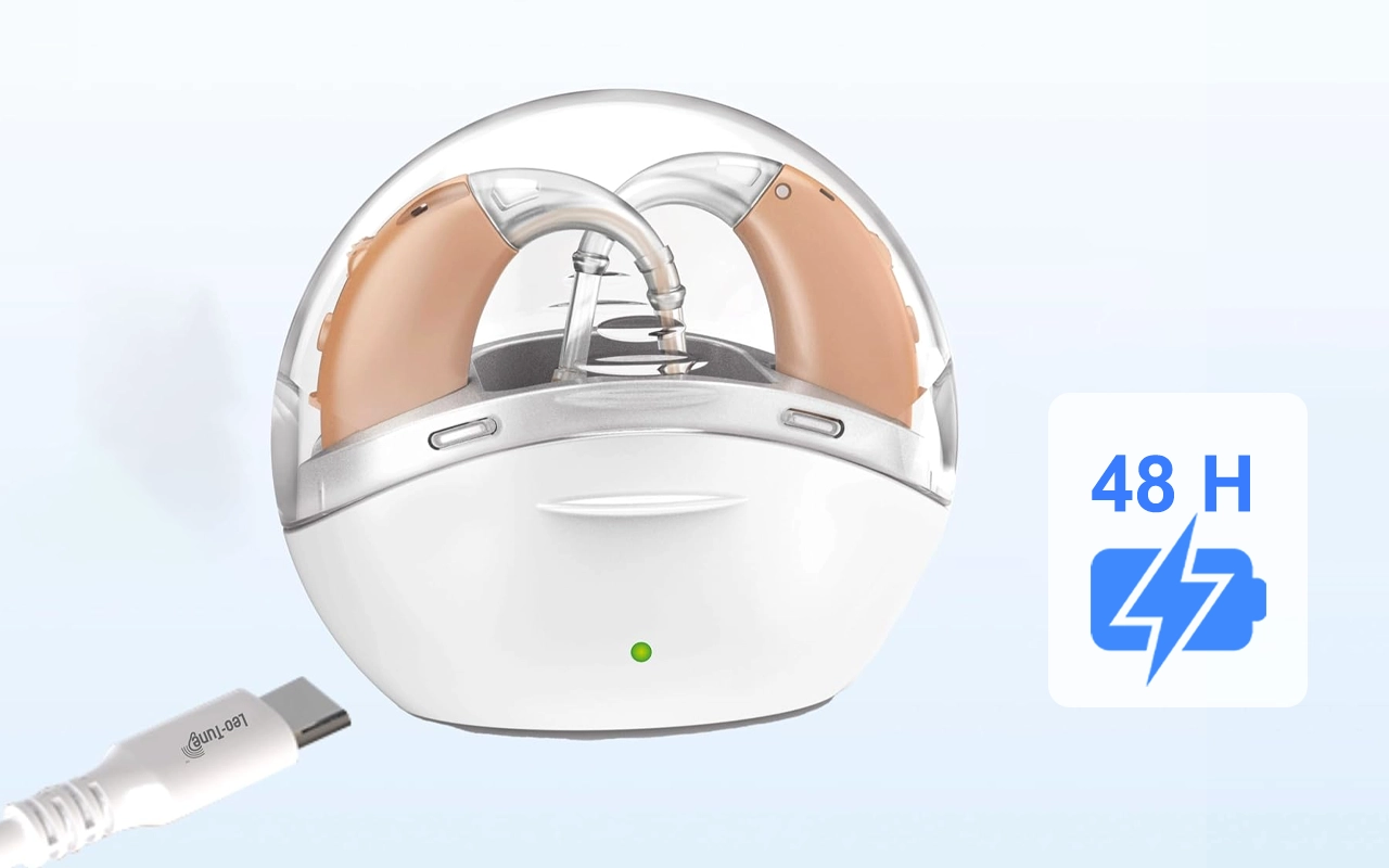 ارتداء هذا الجهاز يوميًا يساعدني على سماع ضحك أحفادي مرة أخرى. البطارية تدوم طويلًا جدًا، والشحن سريع جدًا. مريح طوال اليوم.