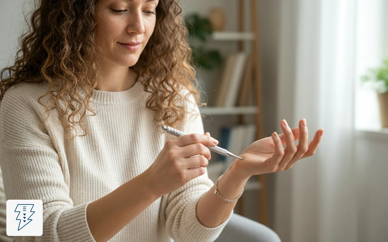 بعد نوبات عمل طويلة وأنا واقفة على قدمي، أمرّر القلم على كاحليّ وساقَيّ. يمنح ضغطًا لطيفًا يخفف الألم دون الحاجة لأي بطاريات.