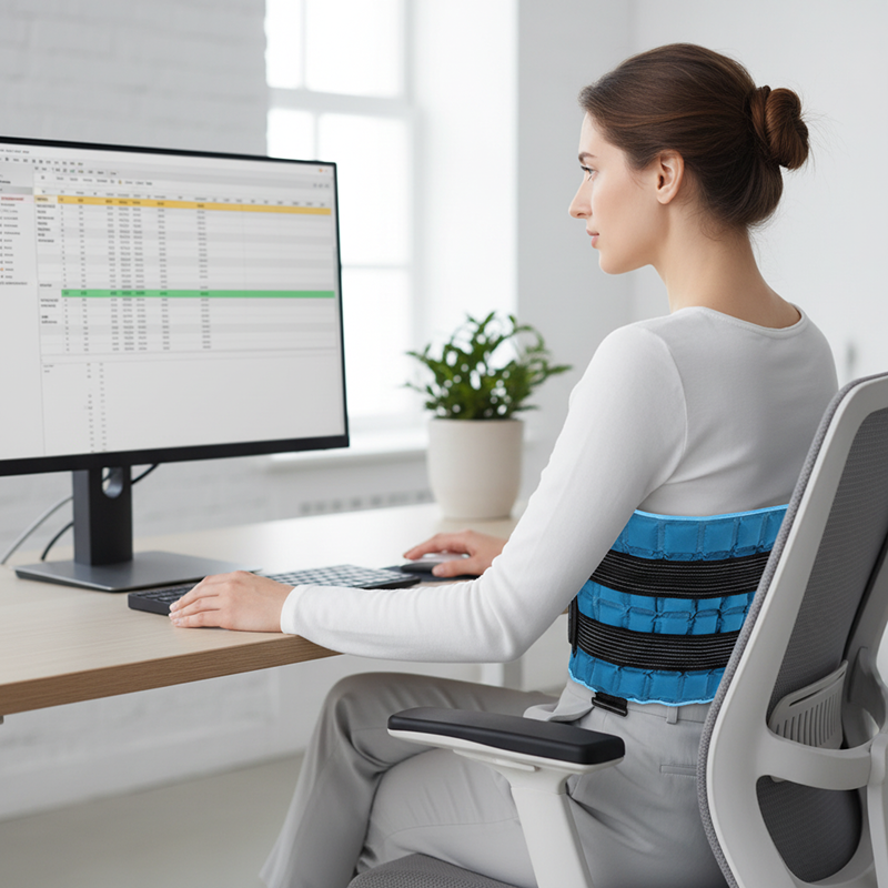 استخدمت هذه الوسادة المرنة في العمل لكتفي المتيبس. الأحزمة جعلتها ثابتة في مكانها حتى أثناء الكتابة.
