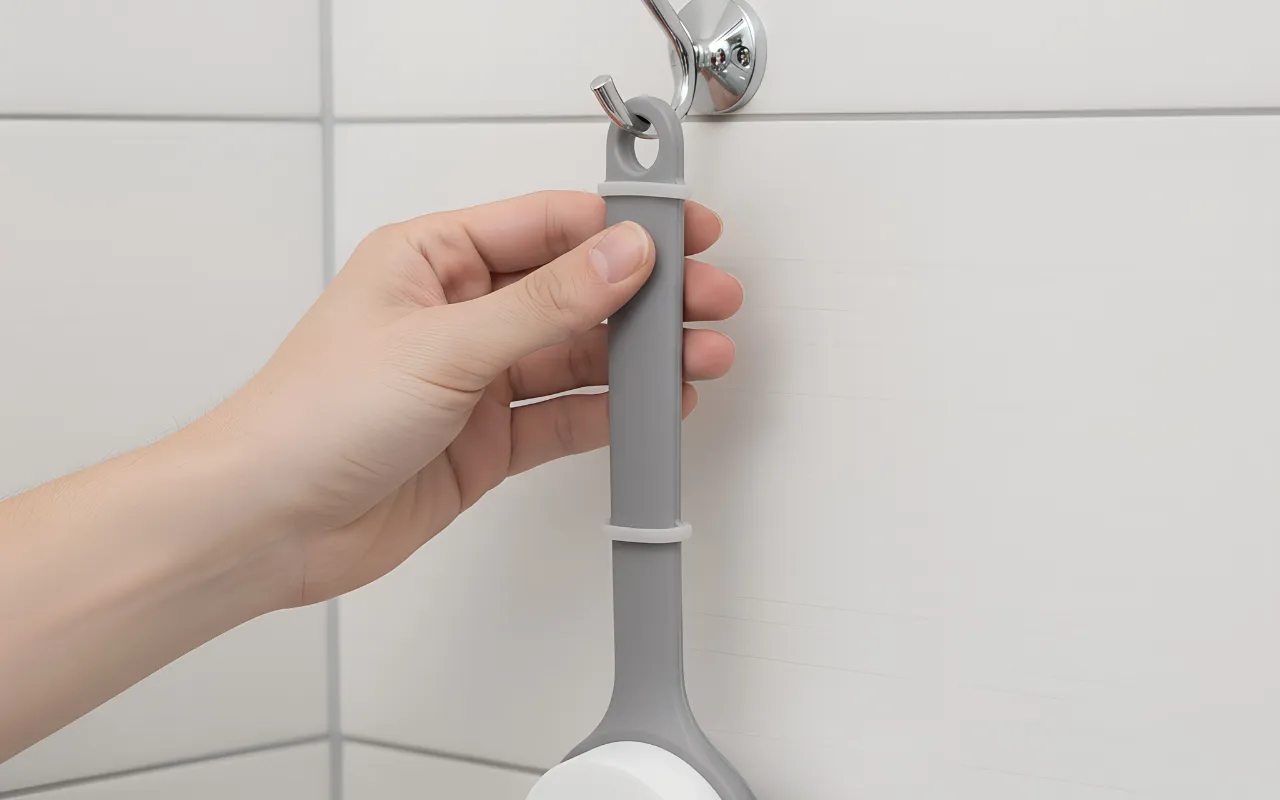 المقبض متين ومريح عند الإمساك به. أعلقها على الخطاف بعد كل استخدام. لم أمتلك فرشاة عملت بهذه الجودة على كتفي وأسفل ظهري.