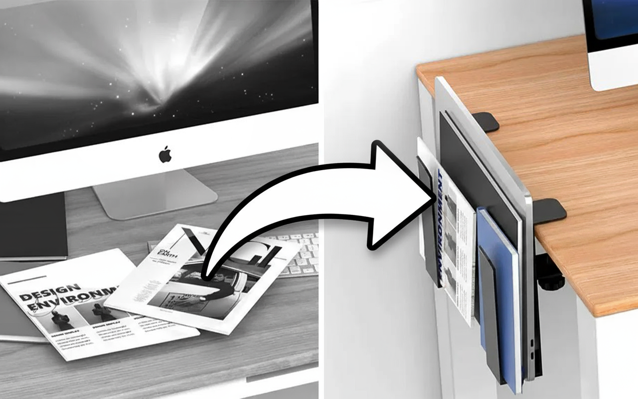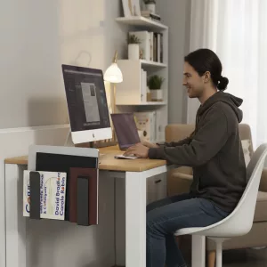 قلل الفوضى بسرعة باستخدام حامل ذكي بجانب مكتبك. استمتع بمساحة أكبر للعمل أو الكتابة دون تشتيت الانتباه.