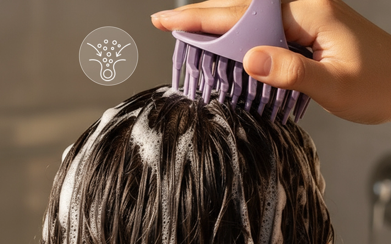 الشعيرات الناعمة تخفف التوتر دون خدش المناطق الحساسة. كل غسلة تصبح مهدئة ومريحة لرأسك.