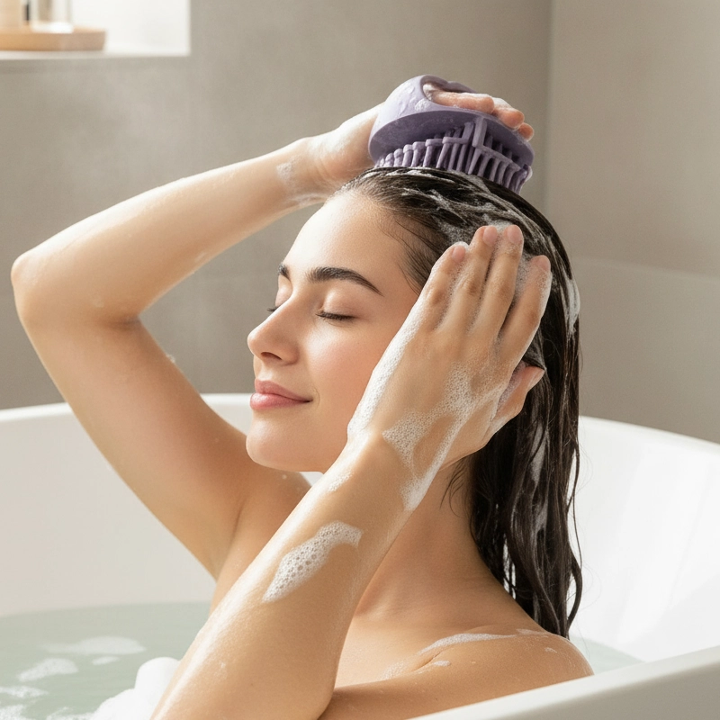 الشعيرات الناعمة تخفف التوتر دون خدش المناطق الحساسة. كل غسلة تصبح مهدئة ومريحة لرأسك.