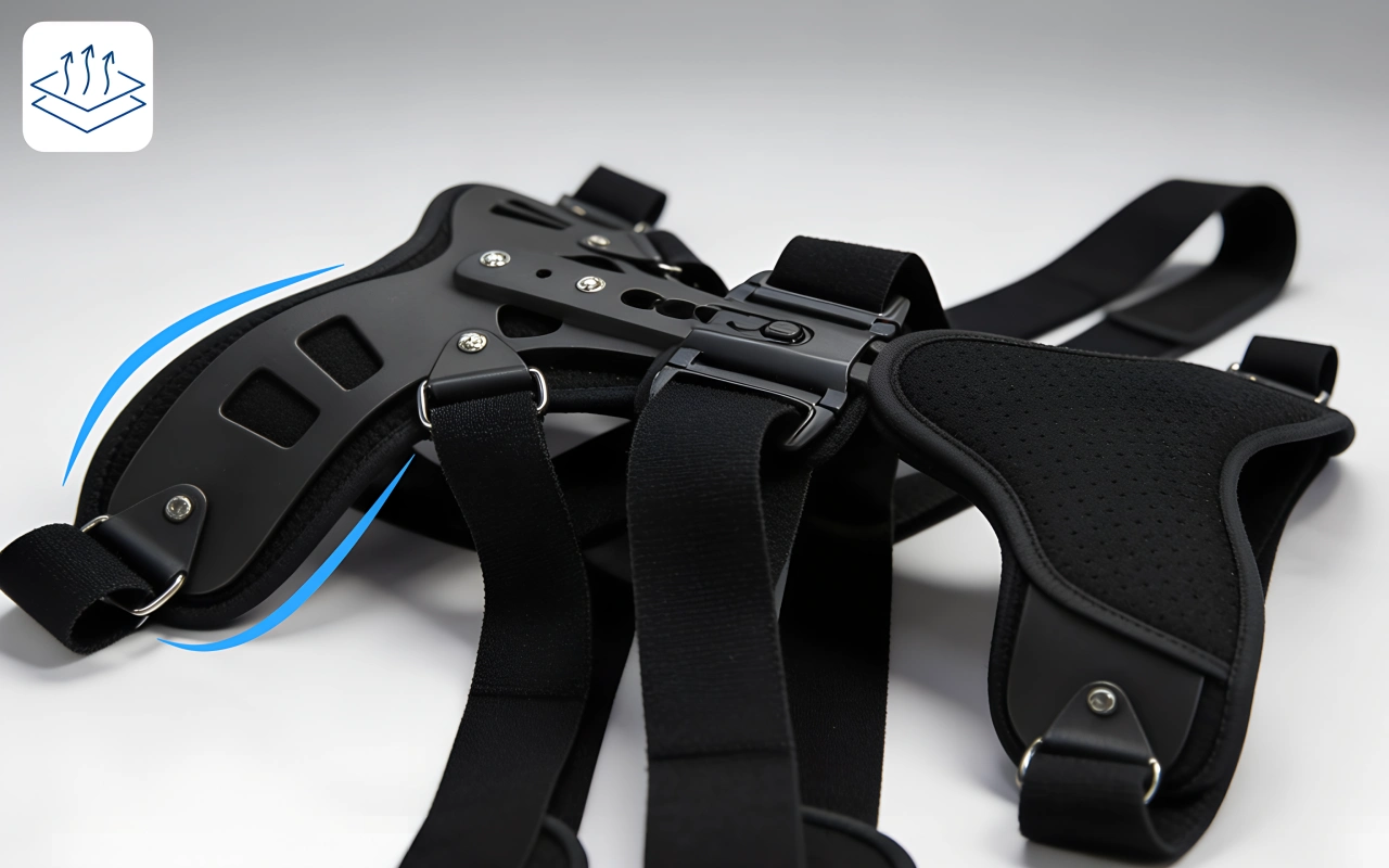تسمح المواد القابلة للتنفس للجلد بالبقاء بارداً وجافاً. توفر الألواح الخفيفة وقضبان الدعم راحة دائمة في كل مكان.