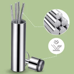 انس أمر الطعام العالق بين ضروسك والمواقف المحرجة في الخارج. طقم أوروتريكس المصنوع من الفولاذ المقاوم للصدأ يتناسب بسهولة داخل الجيوب أو الحقائب. اغسل وأعد استخدام كل أداة لفم أكثر انتعاشاً. تنظيف سهل وسريع يبقي ابتسامتك مشرقة طوال اليوم.