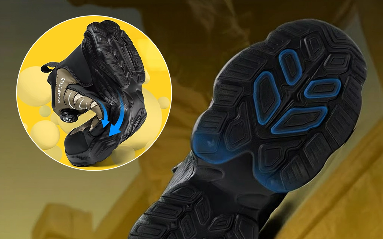 يعزز التدعيم الفولاذي حماية أصابع القدم من الأدوات أو المخلفات الساقطة. النعل المقاوم للطعن يمنع الأجسام الحادة من الوصول إلى قدميك.
