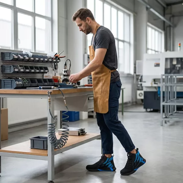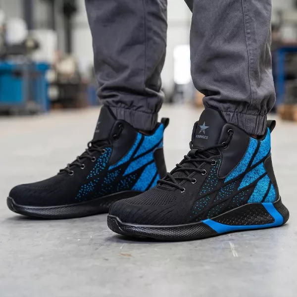 أعمل في ورشة سيارات مزدحمة وكنت أحتاج إلى شيء متين لكن ليس ثقيلاً مثل الأحذية. هذه الأحذية الرياضية تبقي قدميّ باردتين، وأصابع القدم الفولاذية تشعر بالأمان، والنعل يمسك بالبقع الزيتية جيدًا.