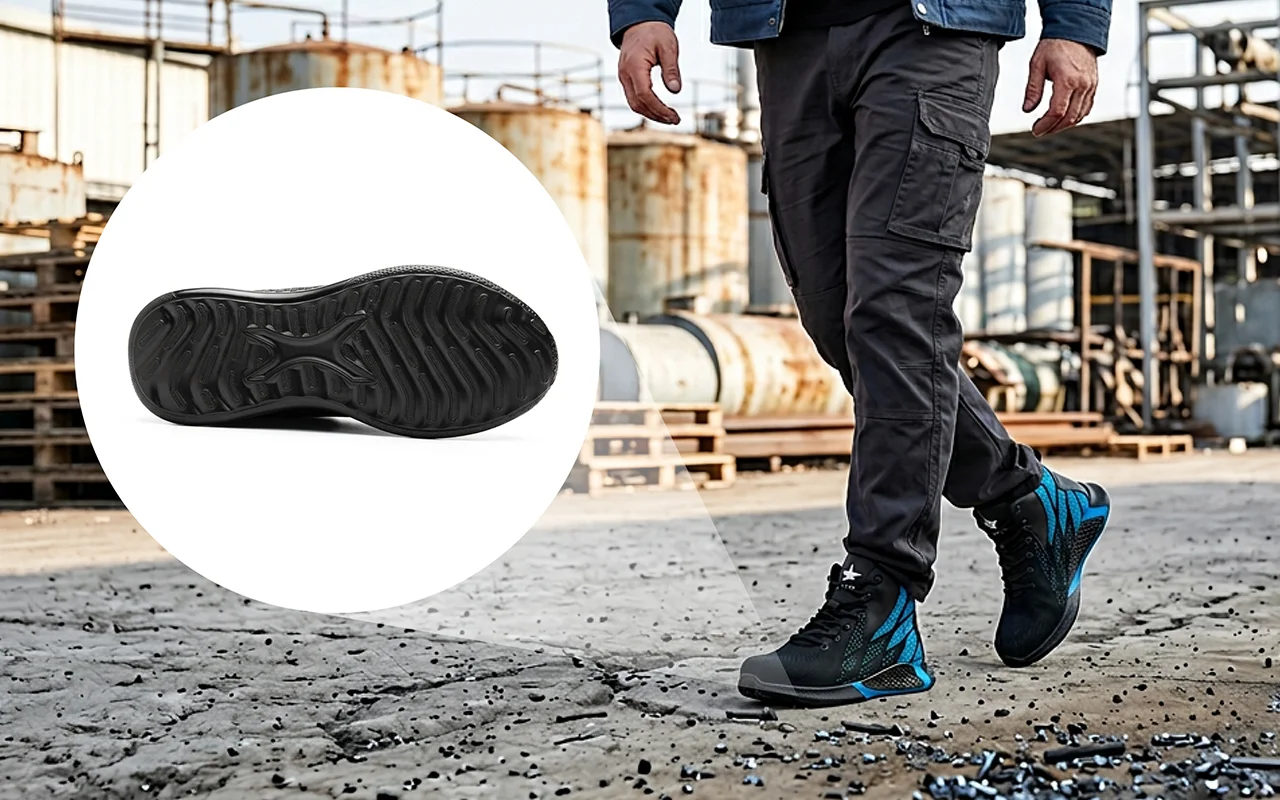 تستخدم أحذية أورتوريكس الرياضية نعالًا منقوشة توفر ثباتًا قويًا على أرضيات الورش المبللة أو الزيتية. الثبات الموثوق يقلل من الانزلاقات الخطرة، مما يساعد العمال على الحركة بسرعة وثقة أكبر.