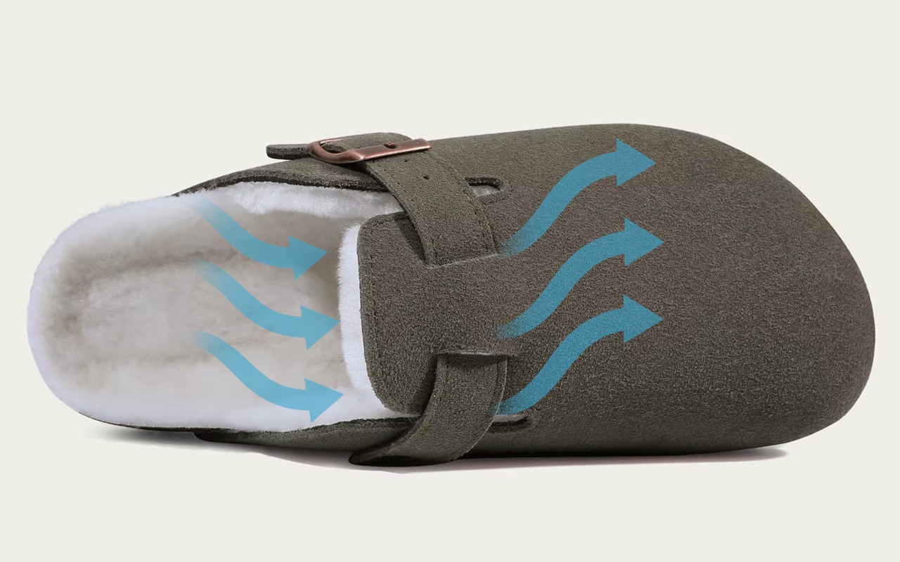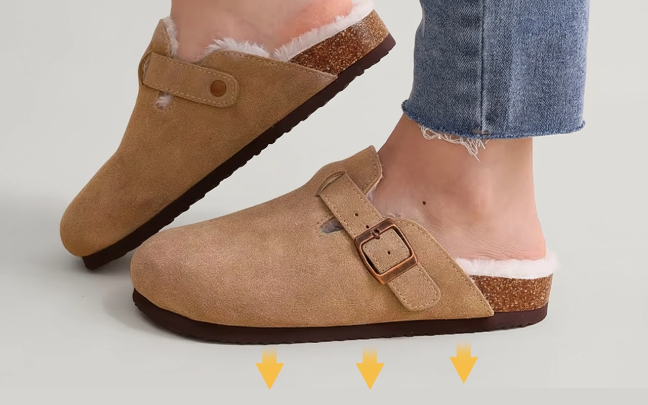 أرتدي هذه القباقيب المصنوعة من الشمواه كل يوم—قدماي لا تتعبان أبدًا، ودعم القوس يبقيني مرتاحة حتى عند الوقوف لساعات في العمل.