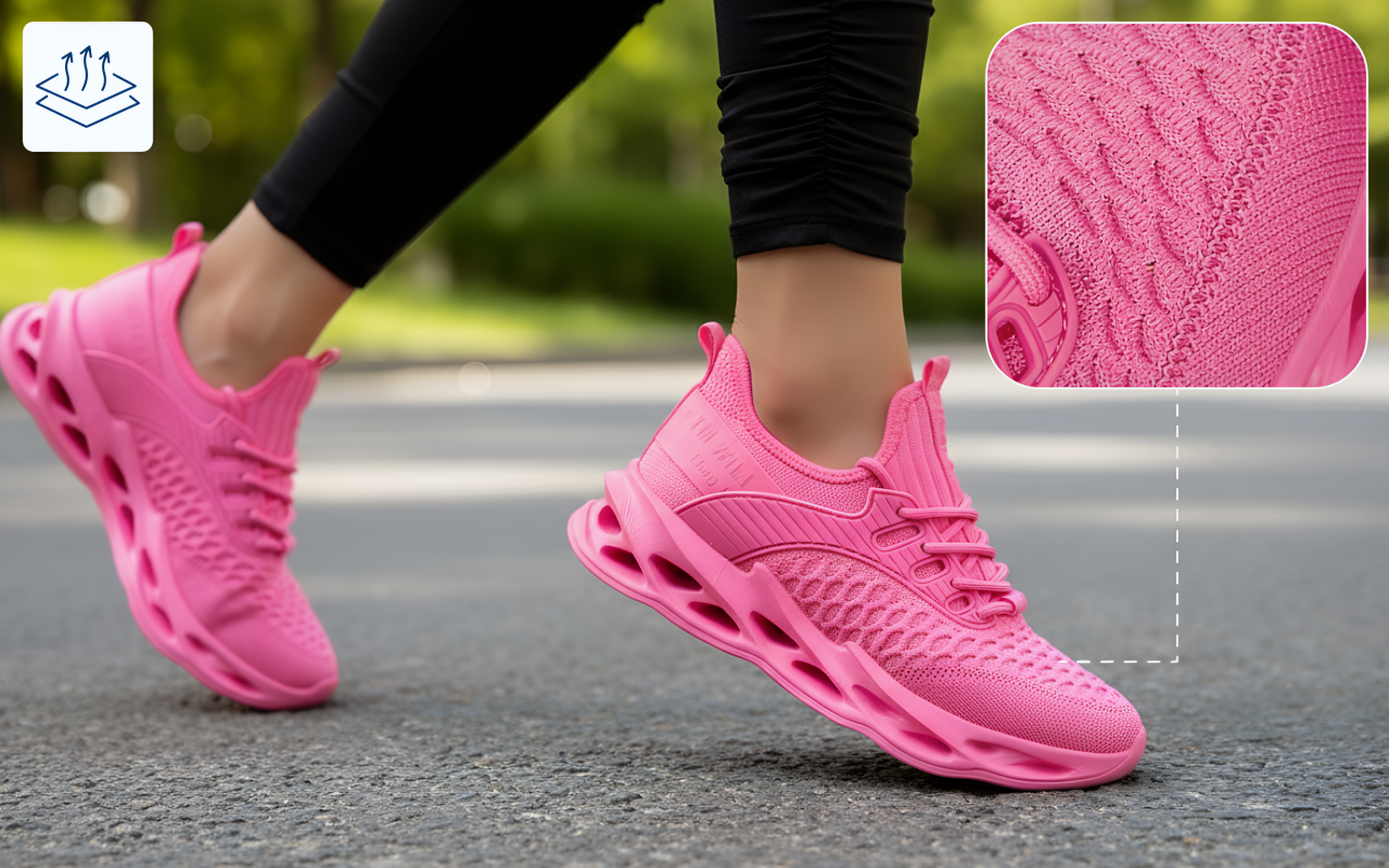 حذاء رياضي نسائي عصري بخامة شبك وخفيف الوزن مع توسيد هوائي