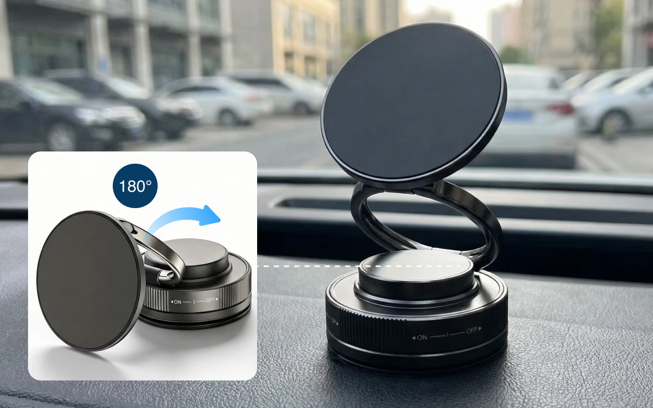 اضبط الزاوية بسهولة للحصول على أفضل رؤية دون إيقاف رحلتك. يمكنك التدوير بشكل كامل واختيار الوضع الرأسي أو الأفقي لعرض أوضح.