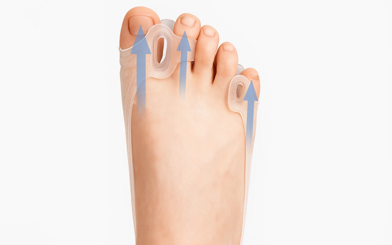 يساعد على استقامة أصابع القدم دون التسبب في عدم الراحة أو الإجهاد. يبقي كل مفصل ثابتًا ليشعر بالحركة بسلاسة.